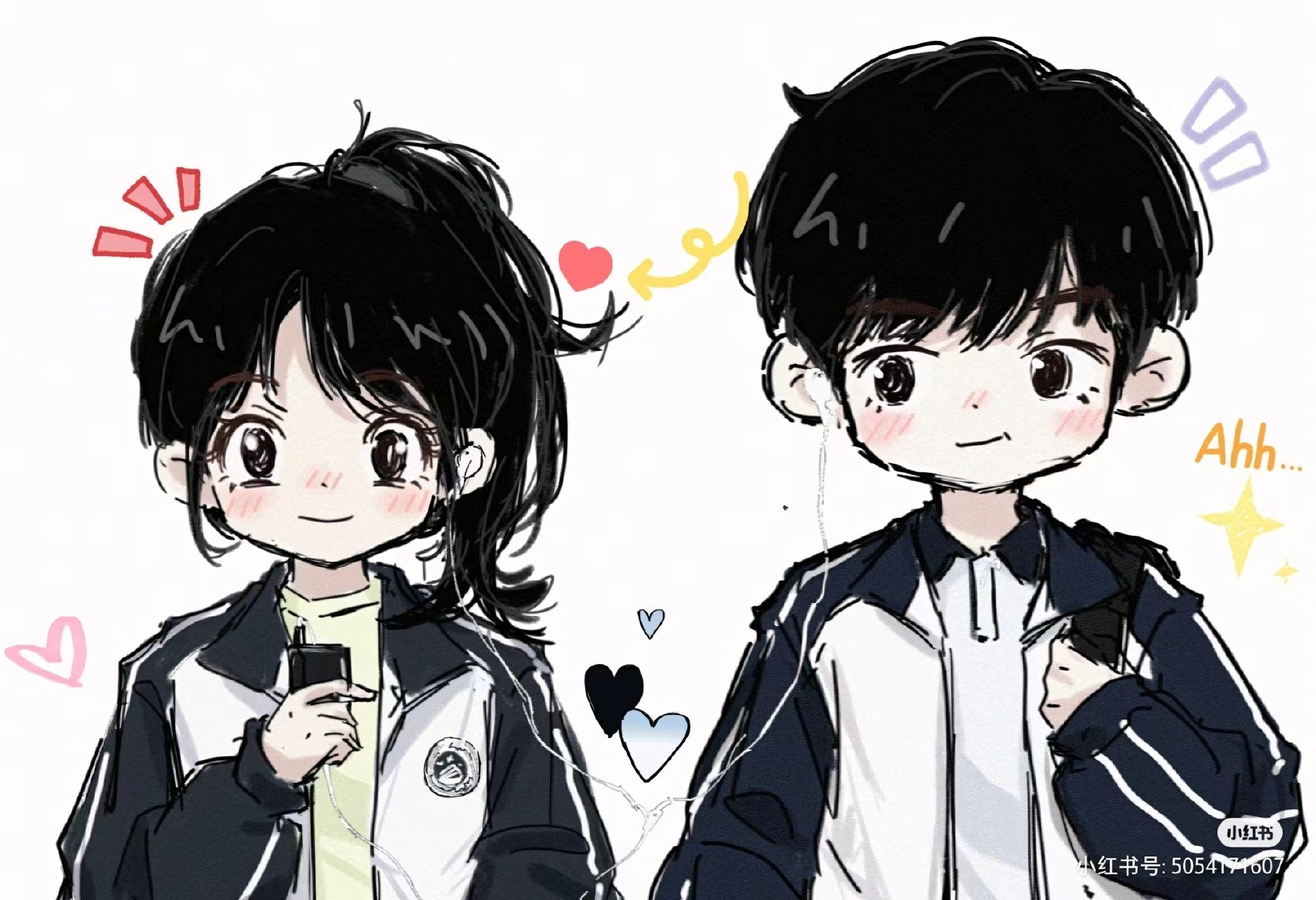 Ảnh cặp đôi cute áp dụng Thẩm mỹ Kawaii với Nét vẽ mềm mại và Cảm xúc tích cực. Phong cách này sử dụng Màu sắc Pastel hoặc hình ảnh Nhân vật Chibi.