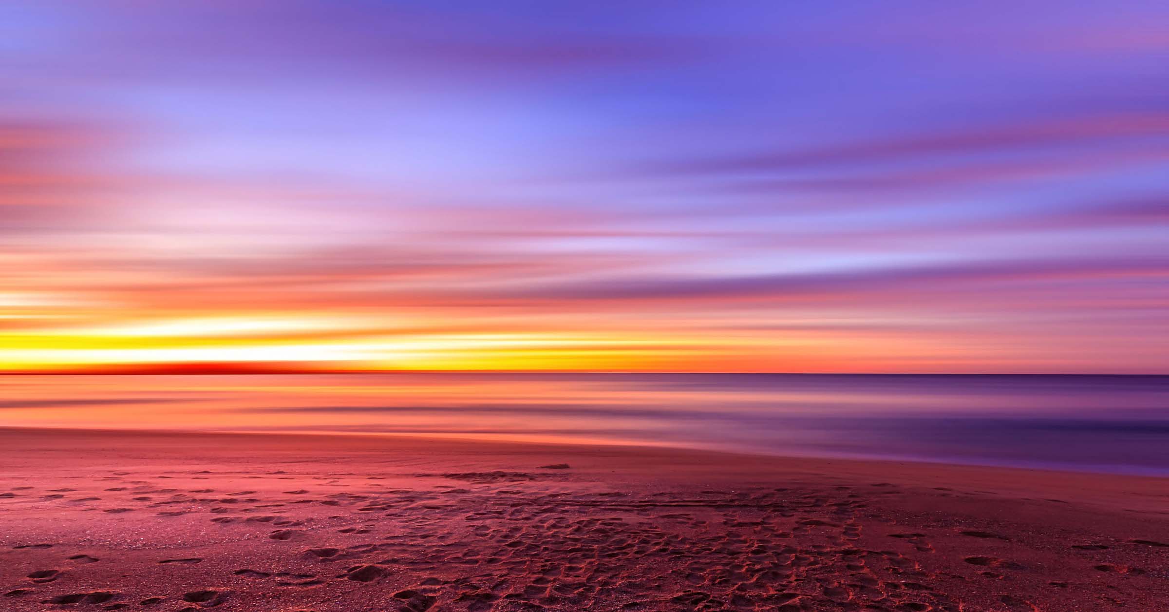 Loại ảnh biển hoàng hôn này thường nhấn mạnh vào đường chân trời, nơi thể hiện tính vô tận của đường chân trời. Ánh sáng lúc này mang sắc vàng/đỏ, được coi là biểu tượng thời gian của sự trôi qua.