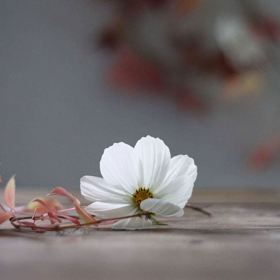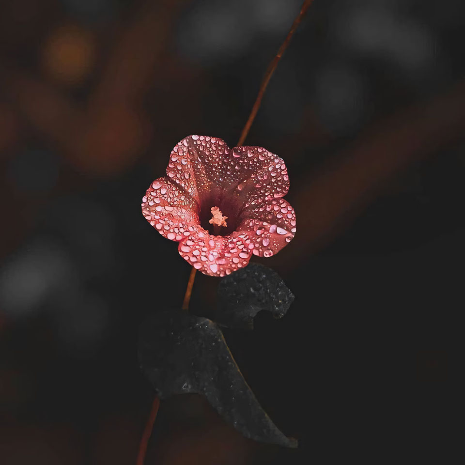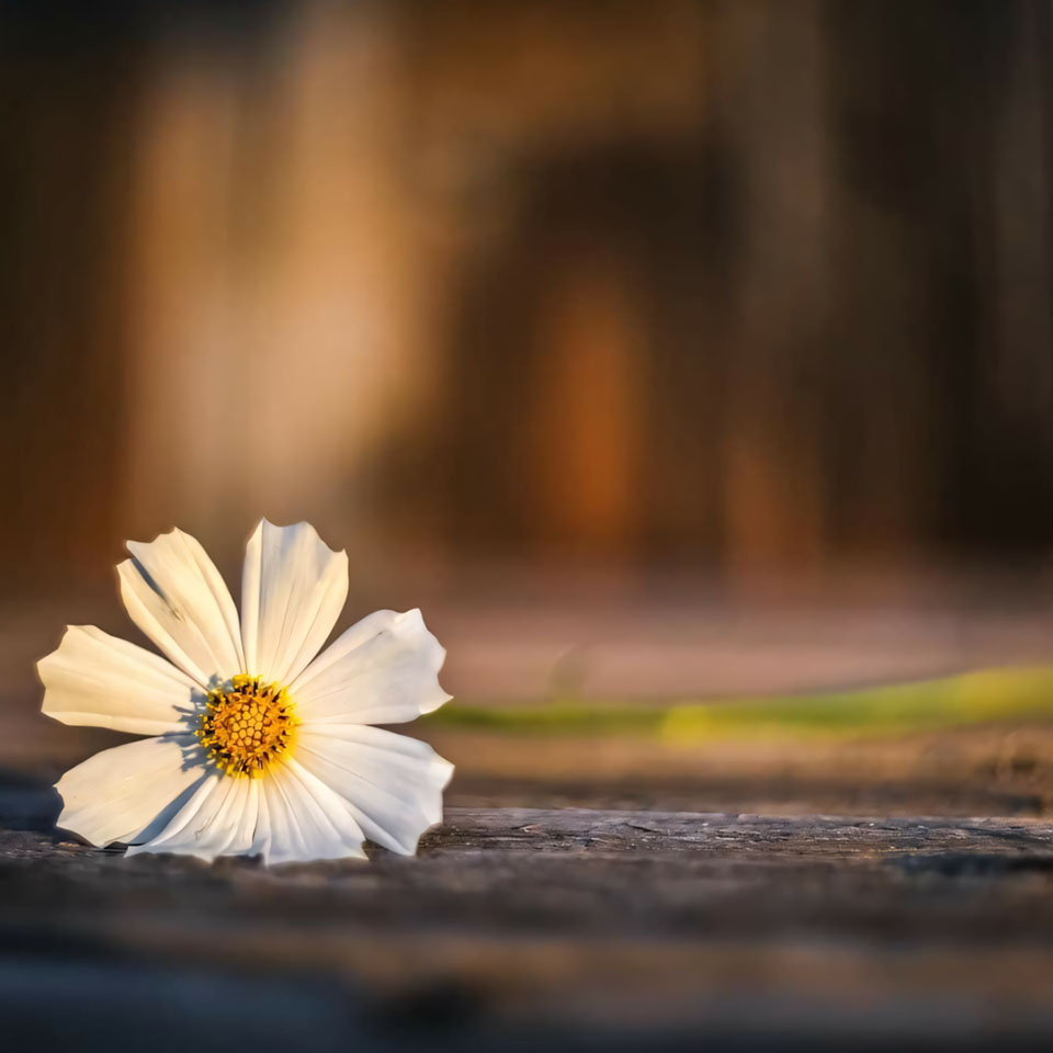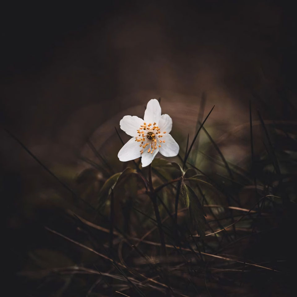 Những bức ảnh hoa buồn cô đơn thường là ảnh ngang, với bông hoa đơn độc lặng lẽ tồn tại giữa khung cảnh rộng lớn. Đó có thể là nhành hoa bị gió thổi nghiêng, bông hoa nằm trên đất lạnh, hay cánh hoa giữa khoảng trống. Ảnh hoa cô đơn như lời nhắc rằng ai cũng có lúc thấy mình nhỏ bé và lạc lõng giữa thế giới.