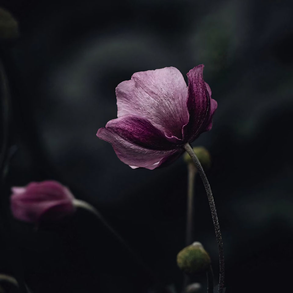 Tông màu trong những ảnh này thường là xám, tím tro, hoặc màu nâu đất, càng nhấn mạnh sự cô tịch. Chúng ta dùng những ảnh này như cách để phản chiếu cảm xúc thật – không ồn ào, không phô trương, chỉ là khoảnh khắc lặng yên. Đó là hình nền hoa buồn, là tâm hồn, là không gian để tĩnh lặng chiêm nghiệm.