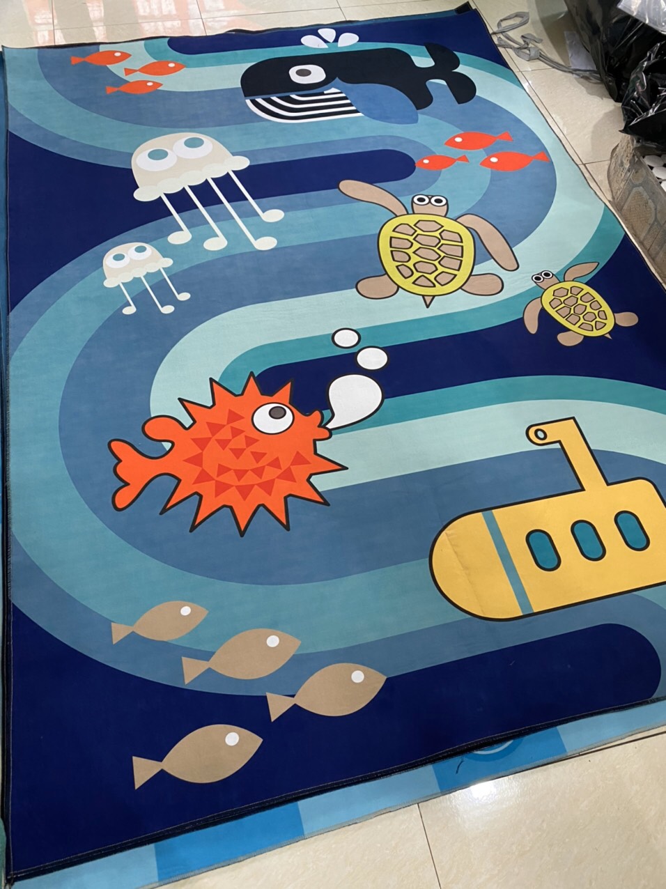 - Thảm hoạt hình đại dương không thấm nước, không bám bụi, có thể gập gọn trong túi khi không sử dụng.