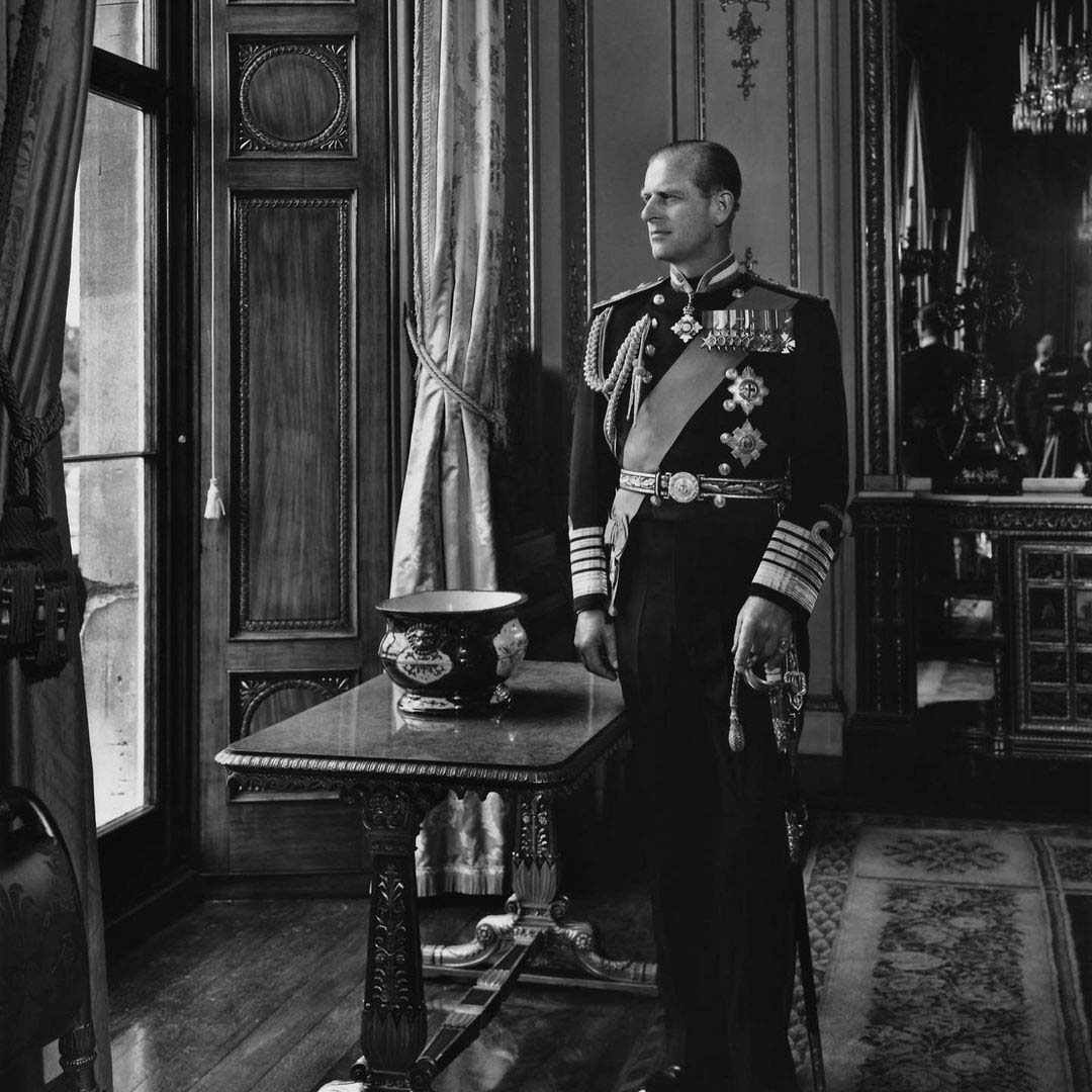 Vương tế Philip tại một buổi lễ tại lâu đài Windsor (2020).Bước ảnh của Nữ vương Elizabeth và Vương tế Philip được Cung điện Buckingham công bố trước ngày sinh nhật lần thứ 99 của ông. Bức ảnh chụp bên ngoài lâu đài Windsor (2020).