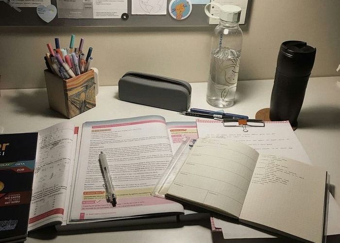 Hình ảnh sách vở ôn thi tập trung nhất, thể hiện tinh thần nghiêm túc và quyết tâm