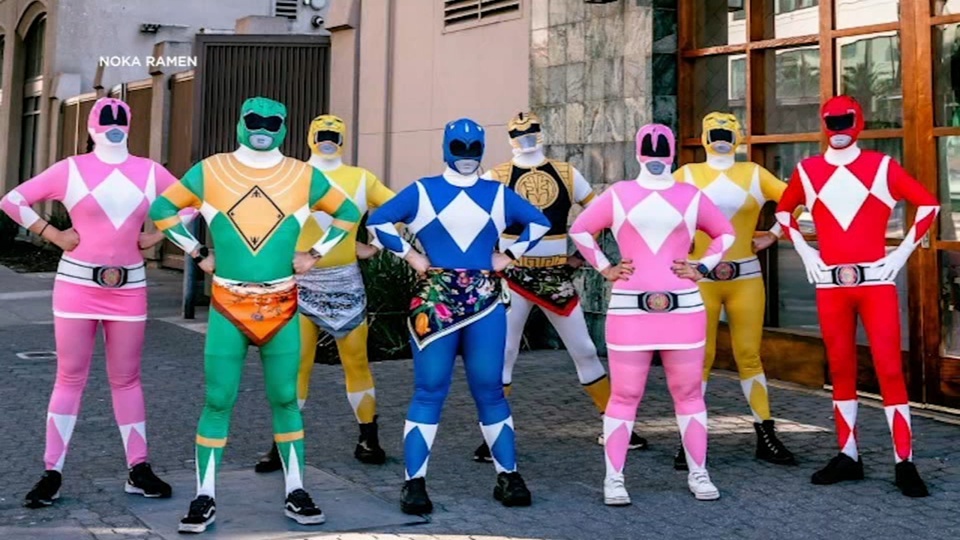 Các nhân viên nhà hàng Noka Ramen trong trang phục siêu nhân. Ảnh: GMA.
