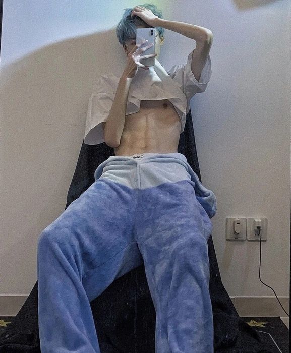 Những bức ảnh trai đẹp với cơ bụng sáu múi che mặt bằng điện thoại, kết hợp giữa sức mạnh và sự cuốn hút đầy nam tính