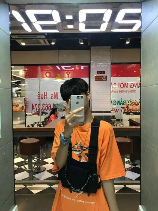 Những bức hình selfie chàng trai che mặt bằng điện thoại, thể hiện sự tự tin và phong cách độc đáo đầy ấn tượng