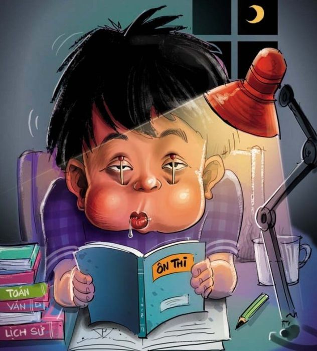 Avatar hài hước với hình ảnh đang ôn thi, mang lại tiếng cười giữa những giờ học căng thẳng