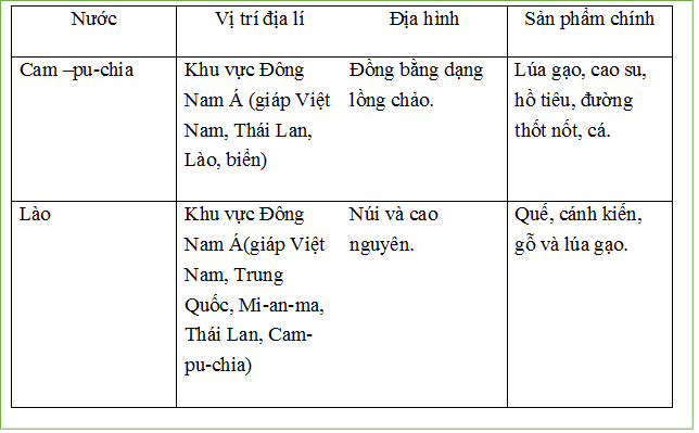 Vậy: Cam-pu-chia và Lào là những nước nông nghiệp, bước đầu phát triển công nghiệp.