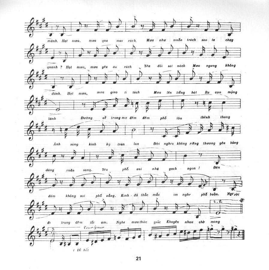 Em bước chân qua thềm Mưa vẫn rơi êm đềm Và chỉ làm phố buồn thêm.