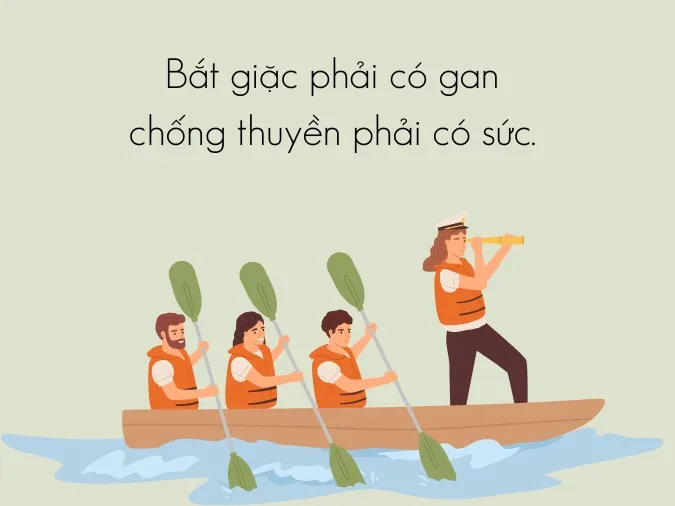 - Bắt giặc phải có gan, chống thuyền phải có sức.
