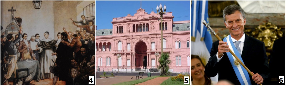 4. Tuyên ngôn Độc lập, ngày 9 tháng 7 năm 1816. 5. Nhà Hồng, trụ sở chính phủ quốc gia, nằm tại Buenos Aires. 6. Ông Mauricio Macri, Tổng thống Argentina.
