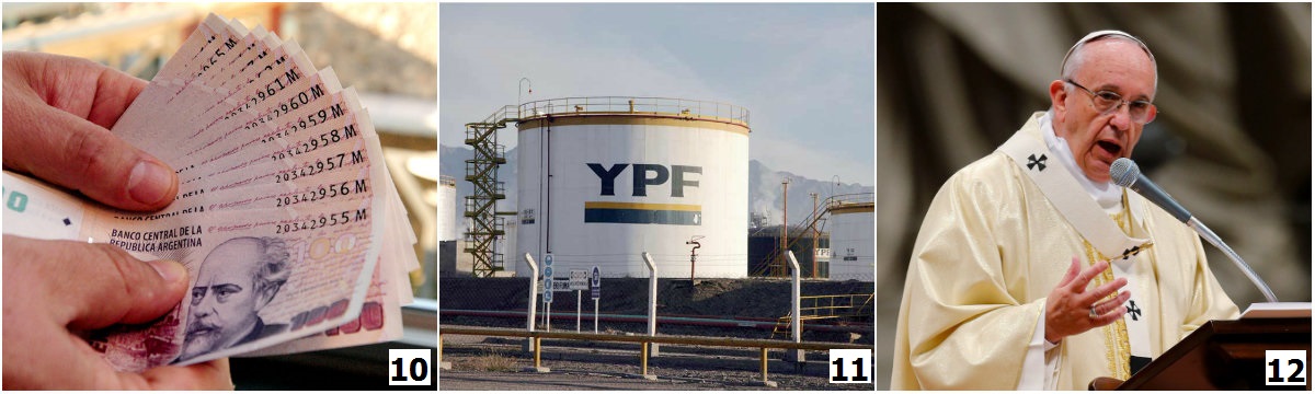 10. Tờ tiền 100 pesos. 11. YPF, công ty dầu khí quốc gia Argentina. 12. Giáo hoàng Francisco, xuất thân từ Argentina.