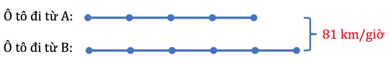 Ví dụ 1. Hai thành phố cách nhau 208,5 km, một xe máy đi từ thành phố A đến thành phố B với vận tốc là 38,6 km/h. Một ô tô khởi hành cùng một lúc với xe máy đi từ thành phố B đến thành phố A với vận tốc 44,8 km/h.