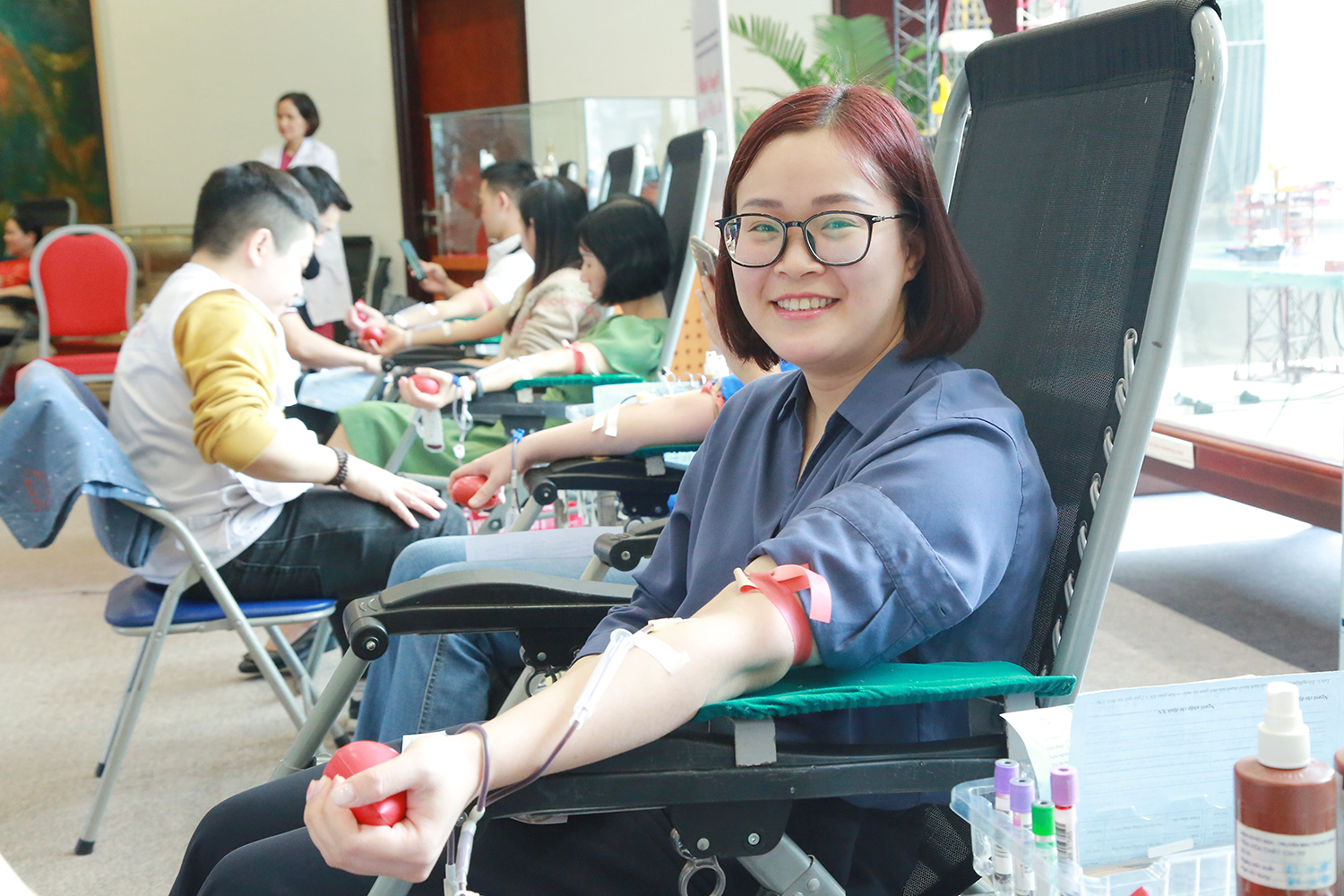 Chị Nguyễn Phương Thảo, Tổng Công ty Xây lắp Dầu khí Việt Nam chia sẻ: Tôi là người rất sợ máu và sợ kim tiêm nhưng sau một lần gia đình có biến cố và người nhà cần phải truyền máu để cấp cứu, thời điểm đó lại đúng vào dịp Tết Nguyên đán nên nguồn máu rất thiếu và phải huy động người nhà đi hiến máu. Sau đợt đó bản thân tôi thấy việc hiến máu là vô cùng quan trọng và cần thiết đối với người bệnh nên đã quyết tâm đi hiến máu. Đến nay, sau 10 lần tham gia hiến máu tôi thấy mình rất khỏe, tinh thần vui và đặc biệt là đã góp thêm được những đơn vị máu cho những người bệnh.