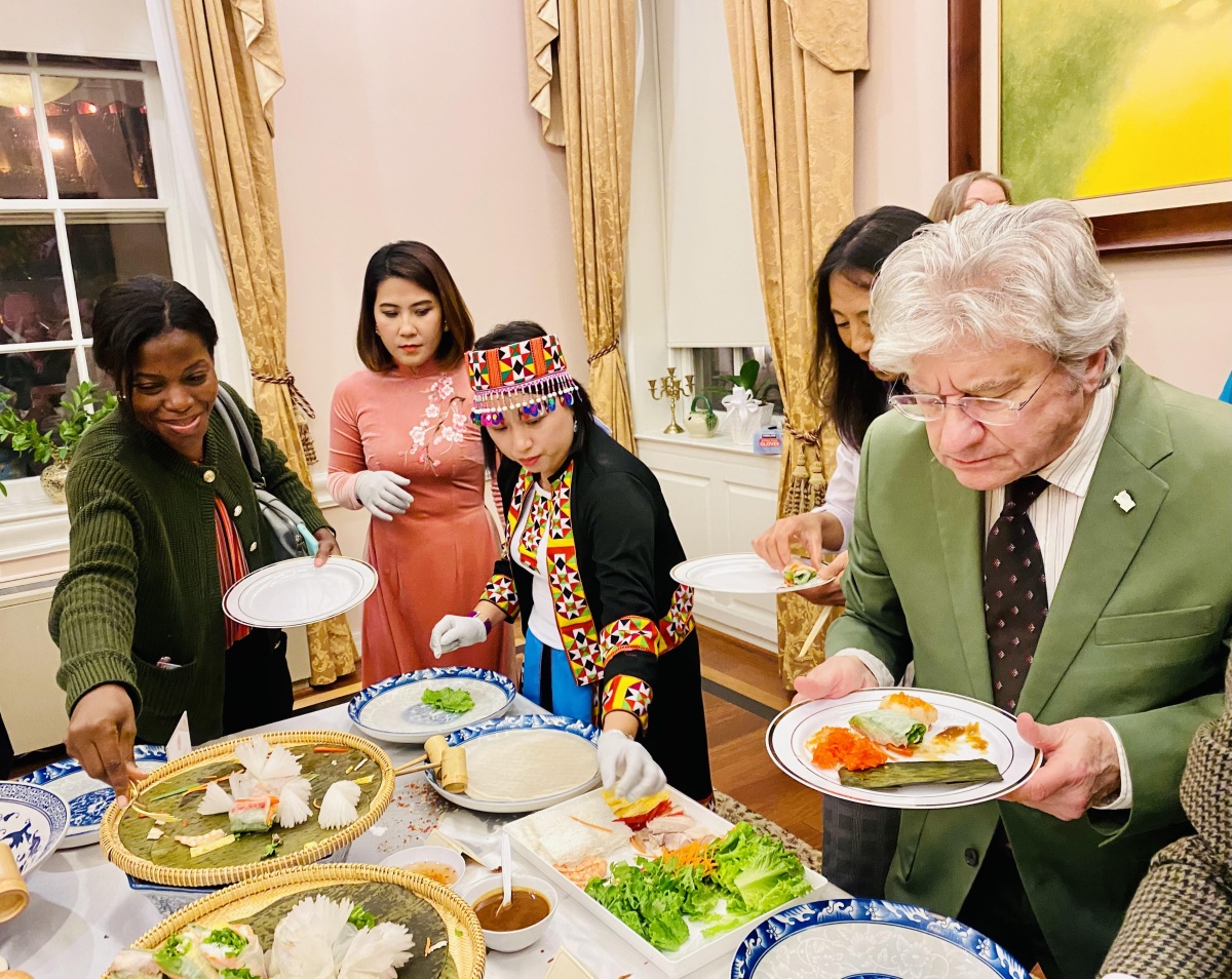 Sự kiện thu hút sự chú ý của khách tham dự với màn trình diễn trang phục truyền thống rực rỡ sắc màu của các dân tộc miền núi phía bắc, áo bà ba, áo tứ thân và áo dài thướt tha trên nền tiết tấu nhạc Việt. Đặc biệt, các món phở và nem cuốn do chính đầu bếp sứ quán thực hiện và các món ăn truyền thống Huế đã mang đến hương vị đặc trưng của ẩm thực Việt cho khách thưởng thức. Bên lề sự kiện, khách tham dự hết sức thích thú khi được mời thử trang phục truyền thống của Việt Nam và trực tiếp trải nghiệm cách làm món nem cuốn.