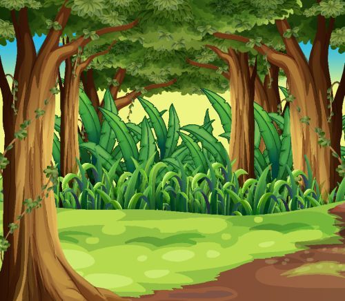 Hình ảnh rừng cây phong cách hoạt hình, đầy màu sắc và sáng tạo, phù hợp với trí tưởng tượng.
