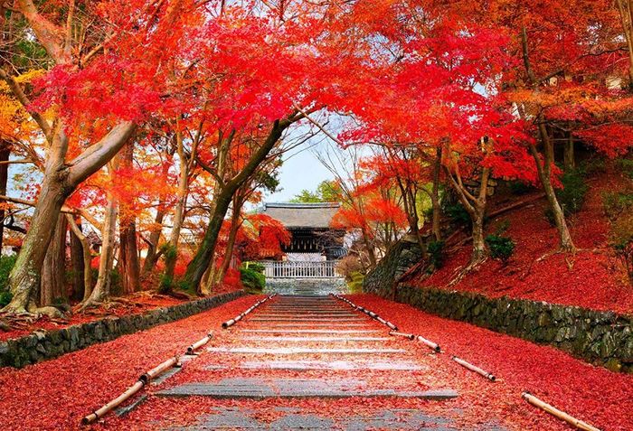 Hình ảnh rừng cây phong, với những tán lá đỏ rực, khắc họa vẻ đẹp độc đáo và ấn tượng của mùa thu.