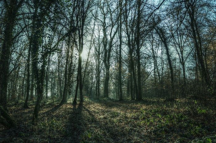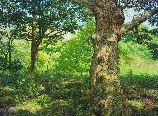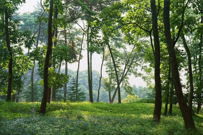 Hình ảnh rừng cây già, mang vẻ đẹp trầm mặc và đầy hoài niệm của thời gian.