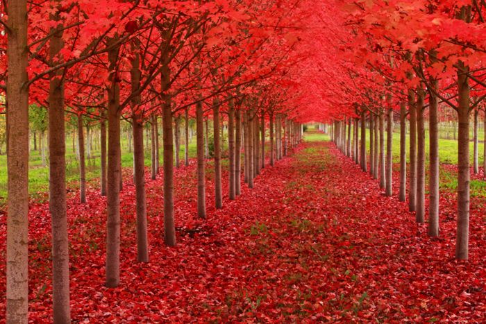 Hình ảnh rừng cây lá đỏ, khắc họa vẻ đẹp lãng mạn và rực rỡ của mùa thu.