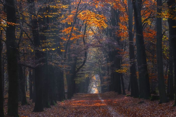 Hình ảnh rừng cây mùa thu, với sắc vàng rực rỡ và không khí dịu dàng của tiết trời se lạnh.