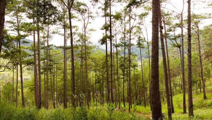 Hình ảnh rừng cây trên cao nguyên, với khung cảnh hùng vĩ và không khí trong lành, mang đến cảm giác thư thái.