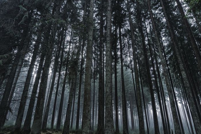 Hình ảnh rừng cây u ám, khắc họa không khí bí ẩn và đầy ma mị của thiên nhiên.