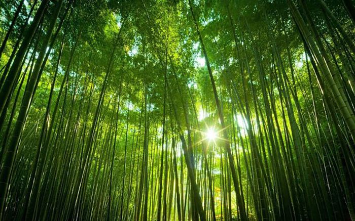 Hình ảnh rừng cây tre, mang vẻ đẹp thanh thoát và bình yên, gợi nhớ đến những làng quê Việt Nam.