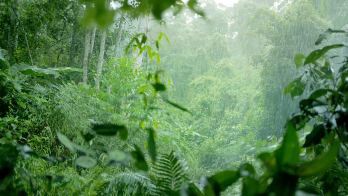Hình ảnh rừng cây nhiệt đới, xanh tươi và tràn đầy sức sống, mang hơi thở của thiên nhiên hoang dã.