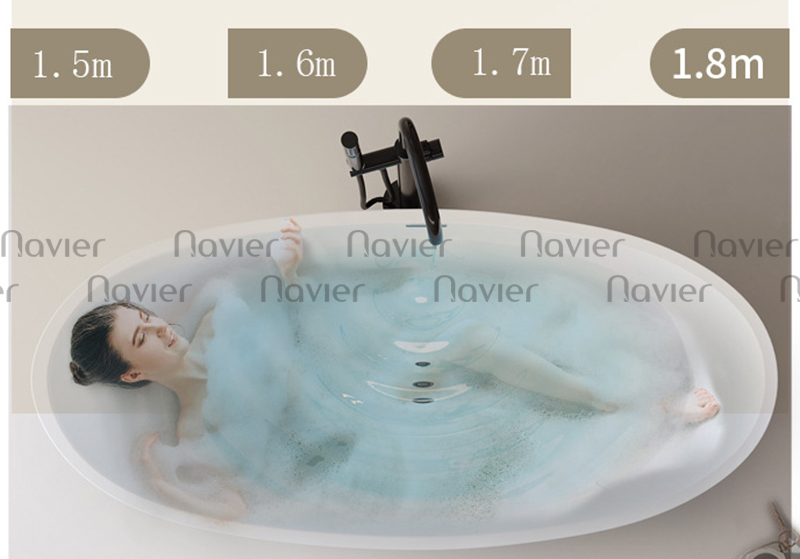 Với thiết kế gọn gàng và trọng lượng nhẹ hơn so với bồn gang hoặc đá tự nhiên, bồn tắm Acrylic Navier NV-1560 dễ dàng vận chuyển và thi công lắp đặt. Sản phẩm phù hợp với nhiều kiểu không gian phòng tắm khác nhau, từ phong cách hiện đại đến tối giản.