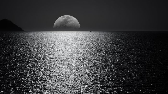 Hình ảnh mặt trăng tròn được chụp trắng đen, mang đến vẻ đẹp cổ điển và đầy nghệ thuật