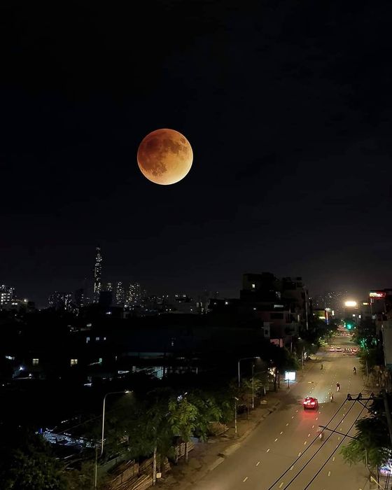 Khoảnh khắc mặt trăng máu tròn vành vạnh, tạo nên khung cảnh đầy mê hoặc