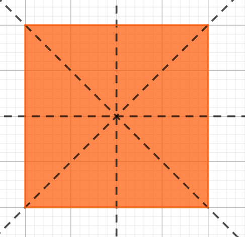 a) Hình vuông có bốn trục đối xứng gồm: 2 đường chéo và 2 đường thẳng đi qua giao điểm của hai đường chéo và vuông góc với hai trong bốn cạnh của hình vuông.