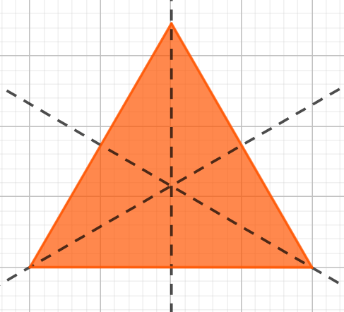 c) Hình tam giác đều có ba trục đối xứng là ba đường cao của tam giác.