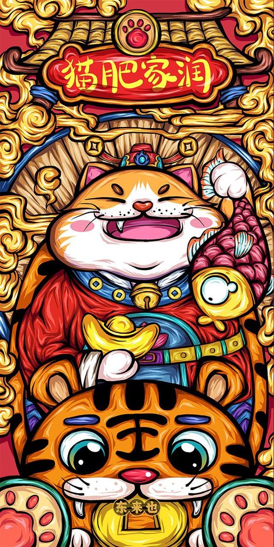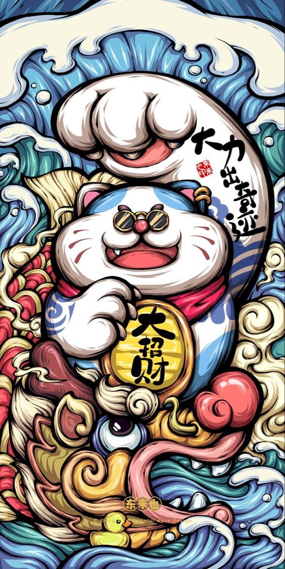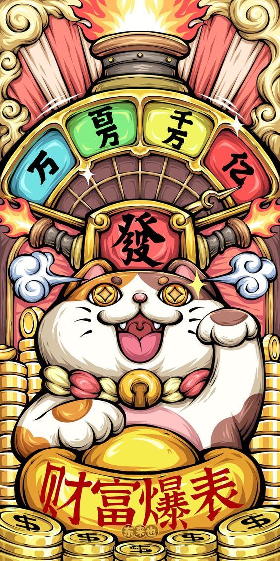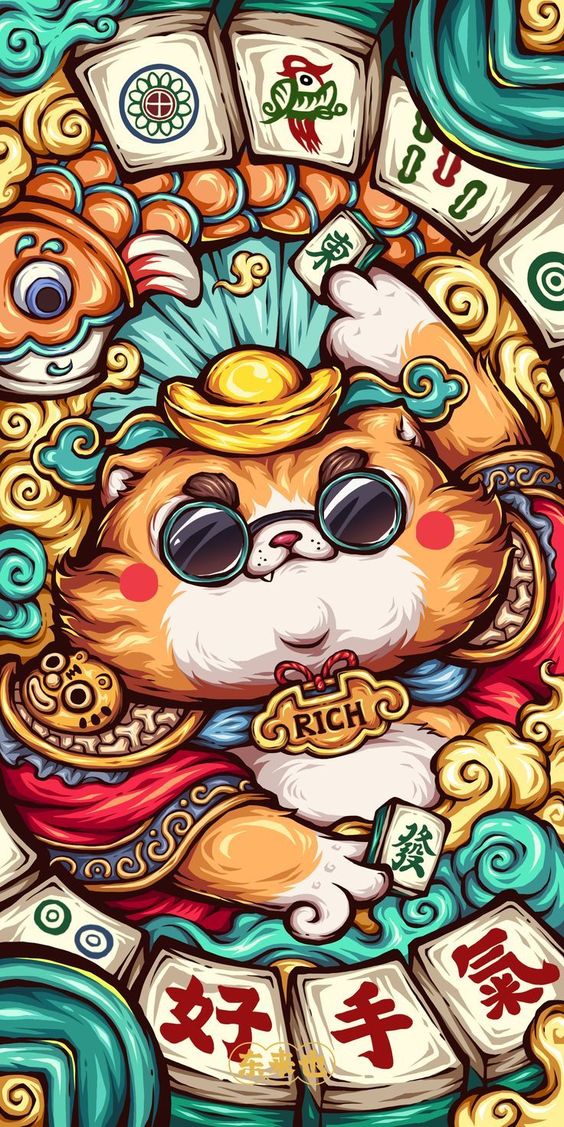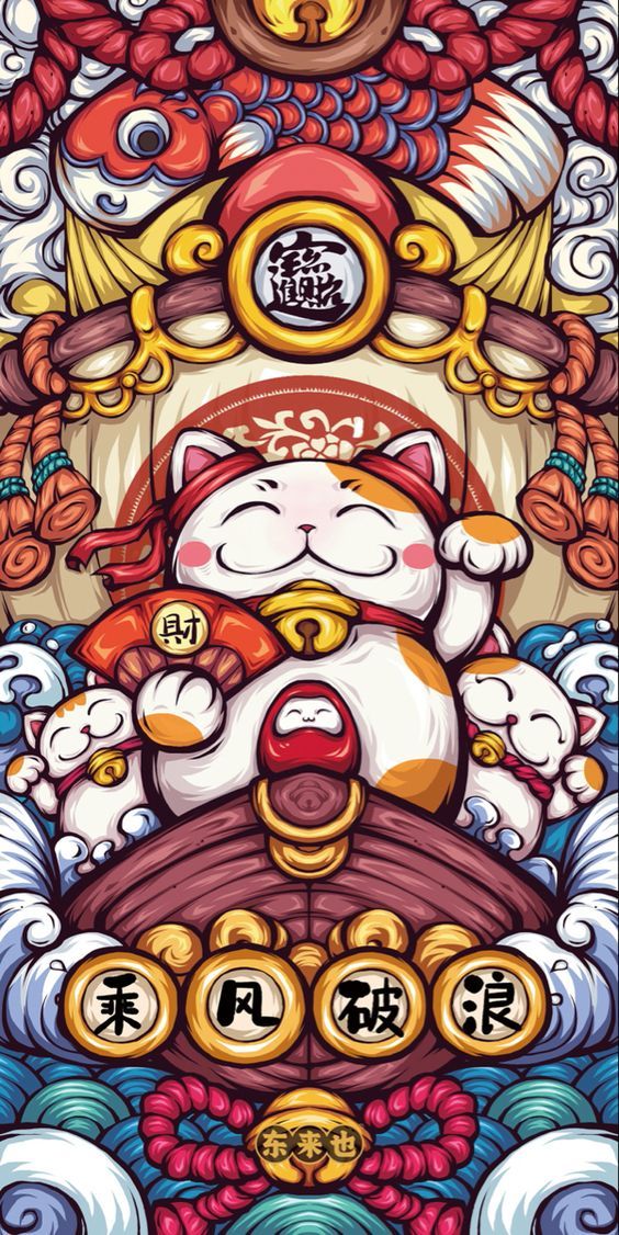 2. Bộ hình nền mèo thần tài sặc sỡ, đầy cá tính