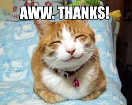 Meme mèo cảm ơn, mang đến sự dễ thương và ngọt ngào trong cách thể hiện lòng biết ơn.
