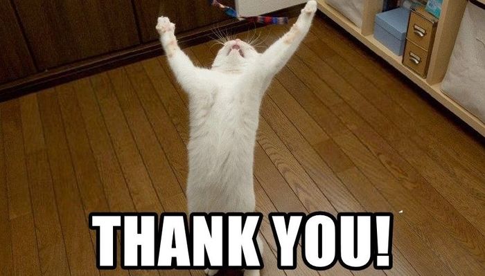 Meme mèo cảm ơn dễ thương, kết hợp hình ảnh đáng yêu của mèo và lòng biết ơn chân thành.