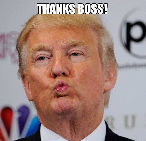 Meme Trump cảm ơn, kết hợp hình ảnh đặc trưng của cựu Tổng thống Mỹ với thông điệp biết ơn đầy hài hước.