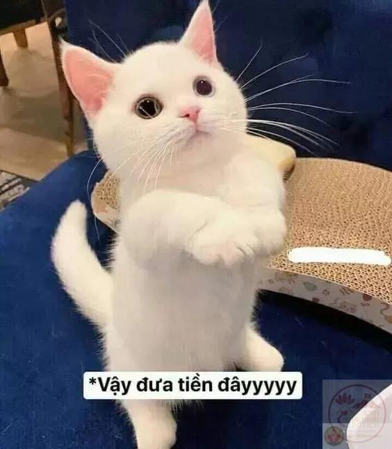 Meme mèo biểu cảm dễ thương chìa chân xin tiền
