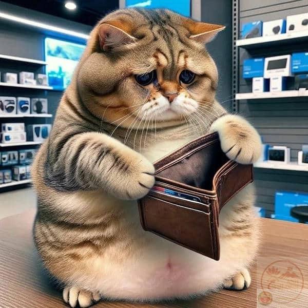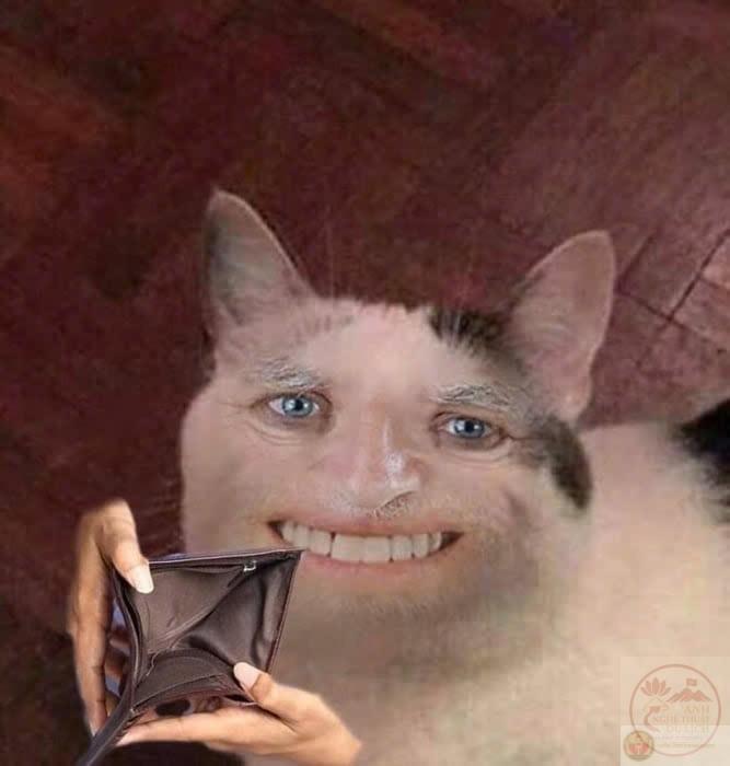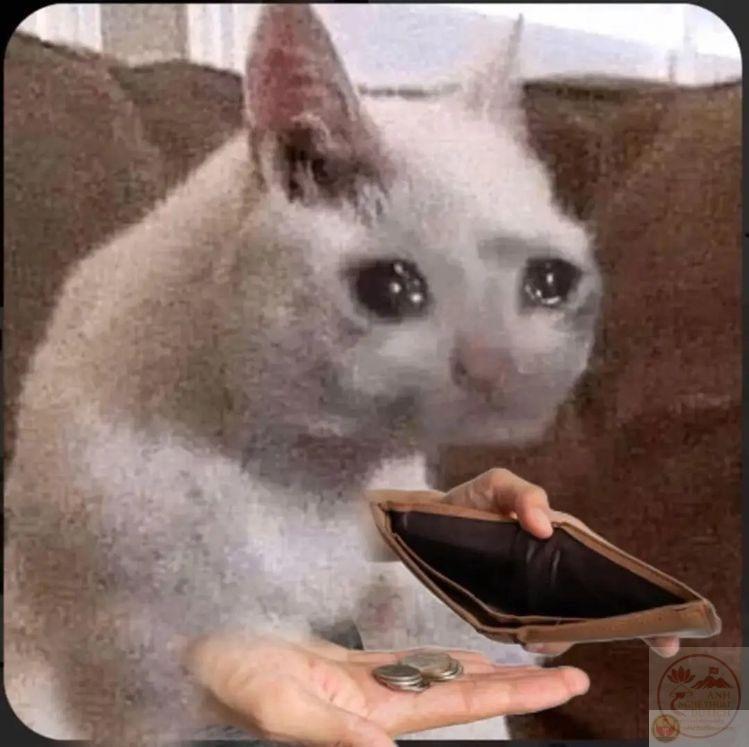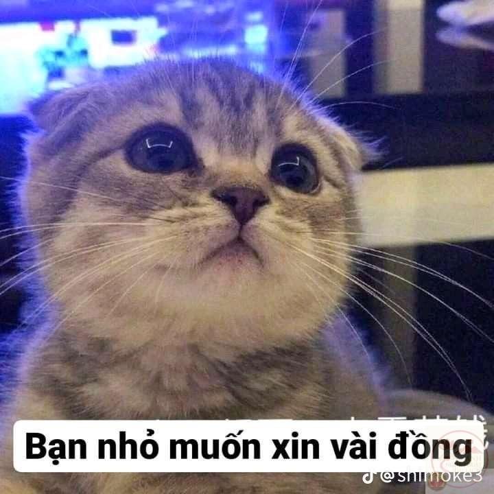 Meme mèo rưng rưng nước mắt xin tiền nhìn tội nghiệp