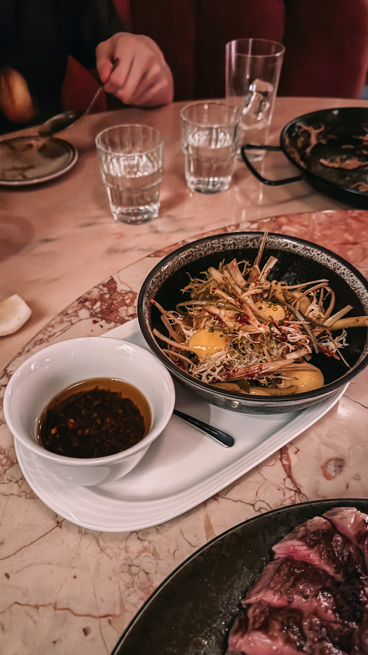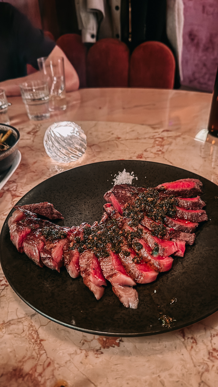 Meo has such a cool and posh vibe – I am in love with the interior, the pink plush seating, and the atmosphere. If you have 6-8 people, I recommend trying to book the special booth we sat in!