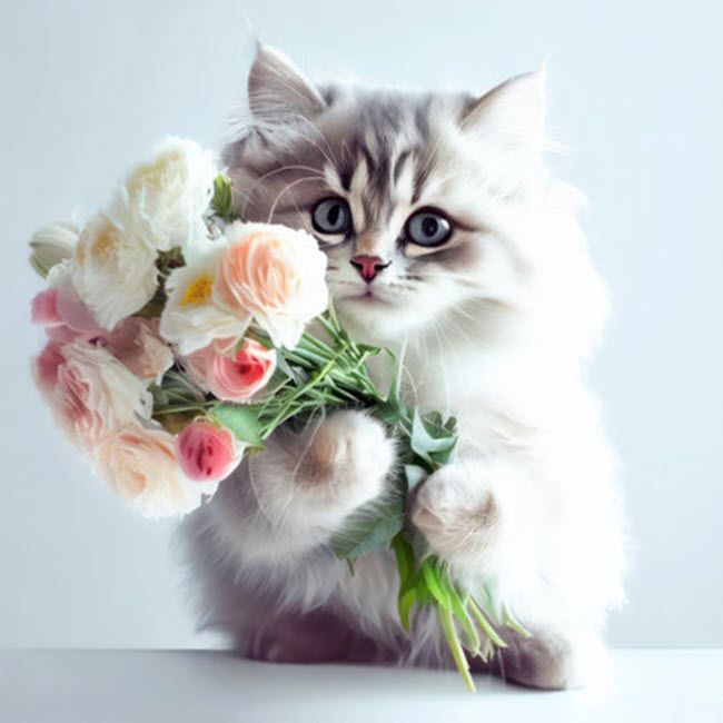 Meme mèo tặng hoa với hình ảnh đẹp mắt và ý nghĩa, tạo nên những khoảnh khắc đáng nhớ
