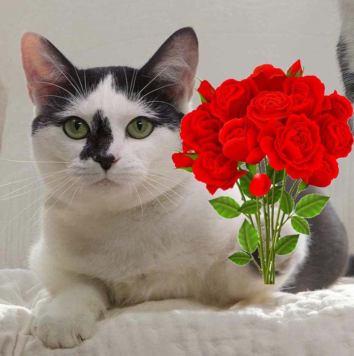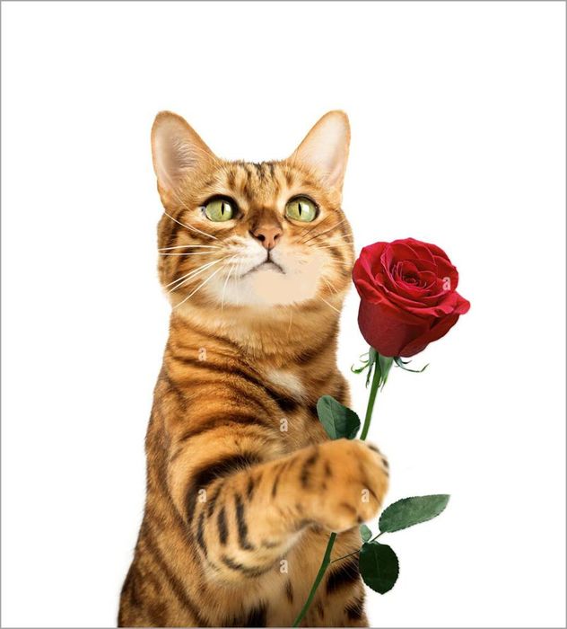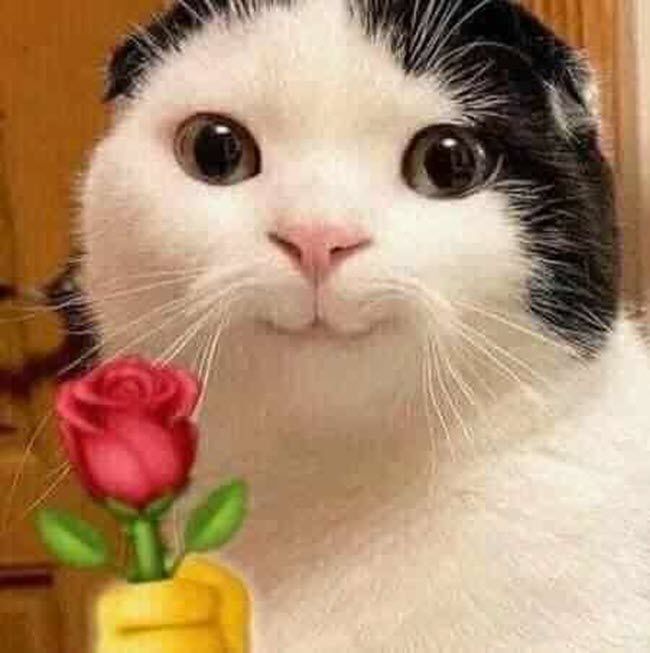 Những hình ảnh meme mèo tặng hoa hồng đầy lãng mạn và ngọt ngào