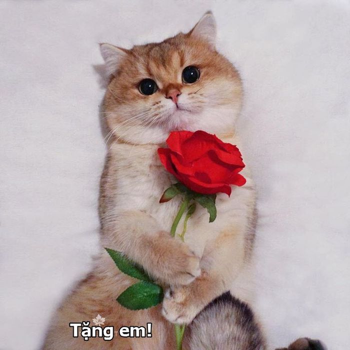 Những hình ảnh mèo tặng hoa với biểu cảm đáng yêu, tạo nên những meme ngọt ngào và đầy cảm xúc