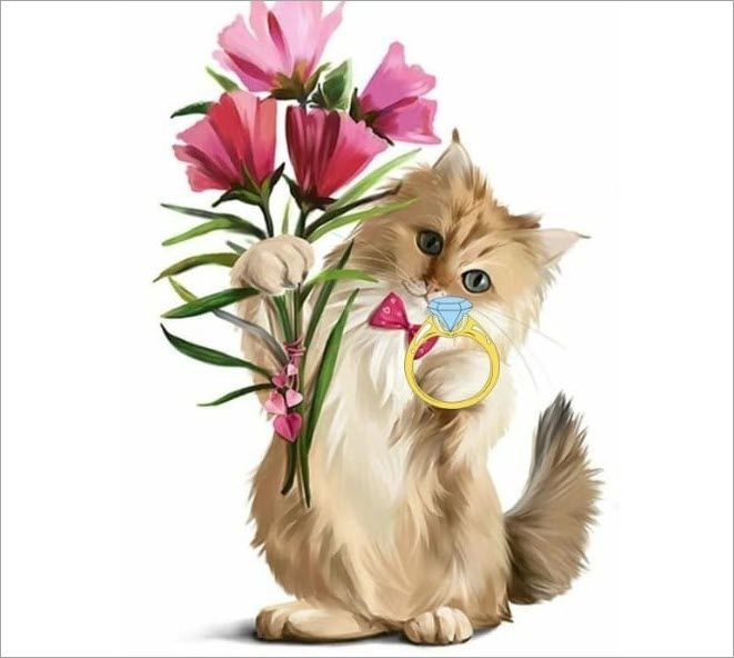 Meme mèo tặng hoa và nhẫn kim cương với sự kết hợp độc đáo, mang lại cảm xúc ngọt ngào và bất ngờ