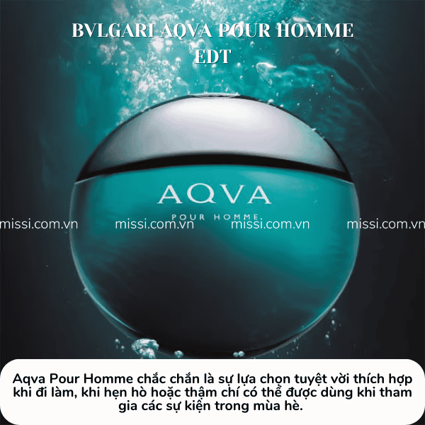 Aqva Pour Homme chắc chắn là sự lựa chọn tuyệt vời thích hợp khi đi làm, khi hẹn hò hoặc thậm chí có thể được dùng khi tham gia các sự kiện trong mùa hè. Bạn có thể tham khảo thêm các chai nước hoa Bvlgari nữ và nam tại Missi – cửa hàng nước hoa Bvlgari chính hãng uy tín.