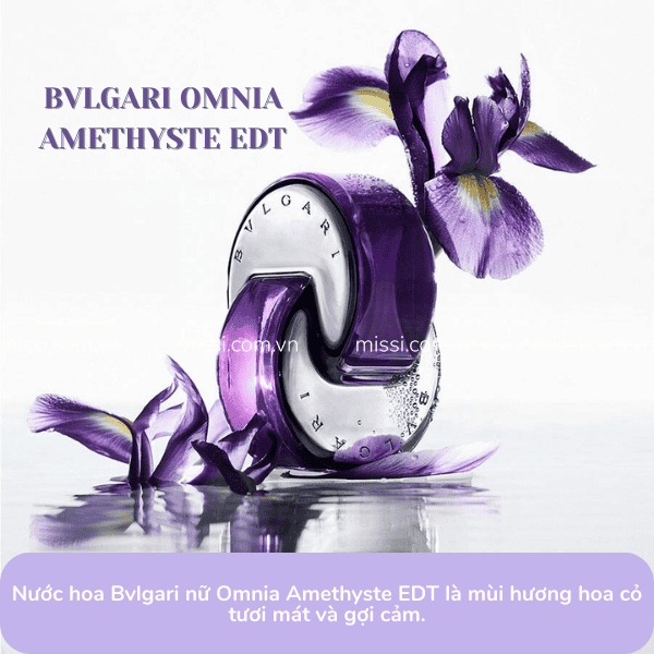 Nước hoa Bvlgari nữ Omnia Amethyste EDT là mùi hương hoa cỏ tươi mát và gợi cảm. Bạn có thể cảm nhận được mùi hương dịu nhẹ thoang thoảng của hoa hồng và hoa diên vĩ hòa cùng vị đắng nhẹ của bưởi. Mang đến cảm giác sạch sẽ và thư giãn cho mọi thời điểm trong năm. Bvlgari Omnia Amethyste EDT với nốt hương nhẹ nhàng, thơm mát và mùi thơm của hoa cỏ tự nhiên.