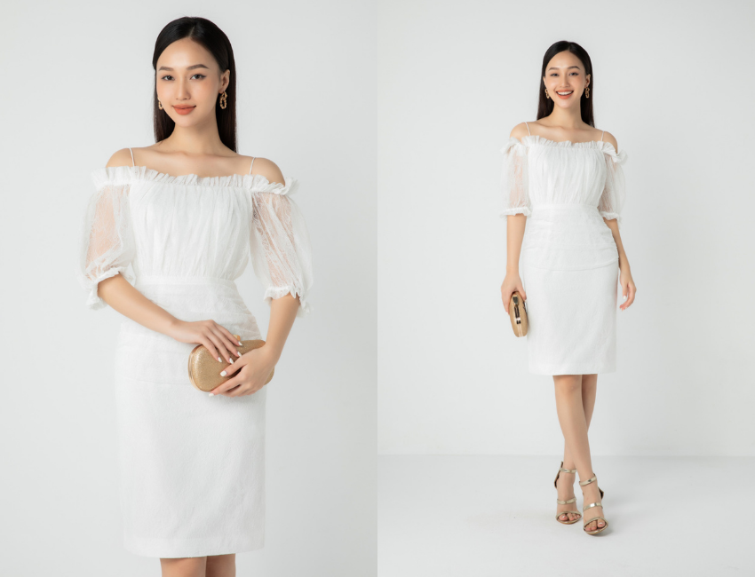 Đầm ôm taffeta dáng tuplip màu trắng xinh đẹp và dễ thương