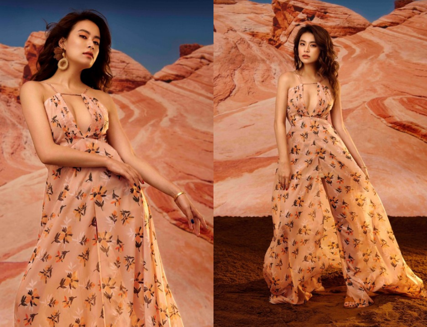 Đầm maxi xẻ tà trước thu hút ánh nhìn của mọi người